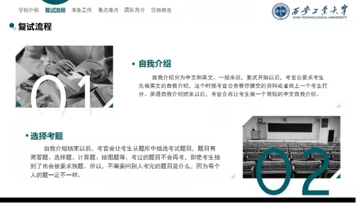 党子晨:2021级足球赌注网站机械专业一志愿录取,复试排名第8,他认为研究生学历非常有用。在现今越来越“内卷”的社会中,学历是最能第一时间敲开别人心门的敲门砖,而且还会获得高平台,好圈子,社会资源也会比本科好。因此,在学习的年纪提升学历,会让以后的个人发展受益无穷。党学长通过足球赌注网站介绍、复试流程、准备工作、重点难点、团队简介和导师推荐六个方面开展介绍。