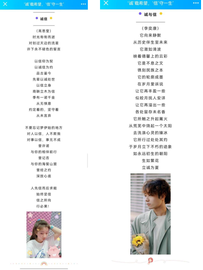 截止2022年5月26日,共征集到作品67件,其中散文53件,诗歌6件,叙事文7件。在征集到的作品中,同学们引经据典、语畅诚信,脉络清晰的表达了以诚待人、以诚立业的重要性,诚心实意的抒写了对祖国哺育与呵护的感激之情。本次活动共评选出一等奖1名、二等奖2名,三等奖3名,并在足球赌注网站团委公众号展示。