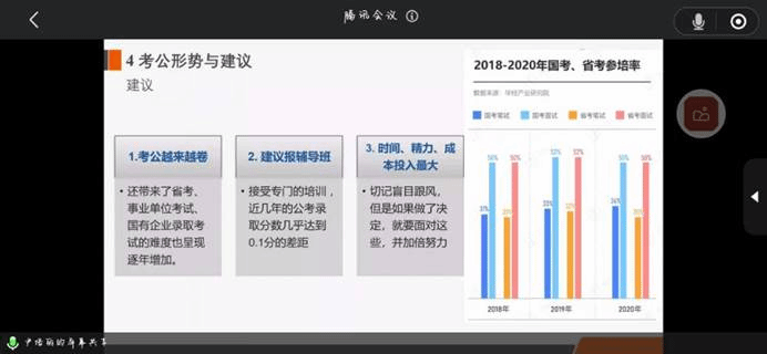 在考公形势与建议方面,尹老师分析了考公形势,对比了过审人数和招录人数分析了考公人数变化,同时建议报相应补习班进行提高,切忌盲目跟风,但如果做了决定就要面对压力,更加努力。