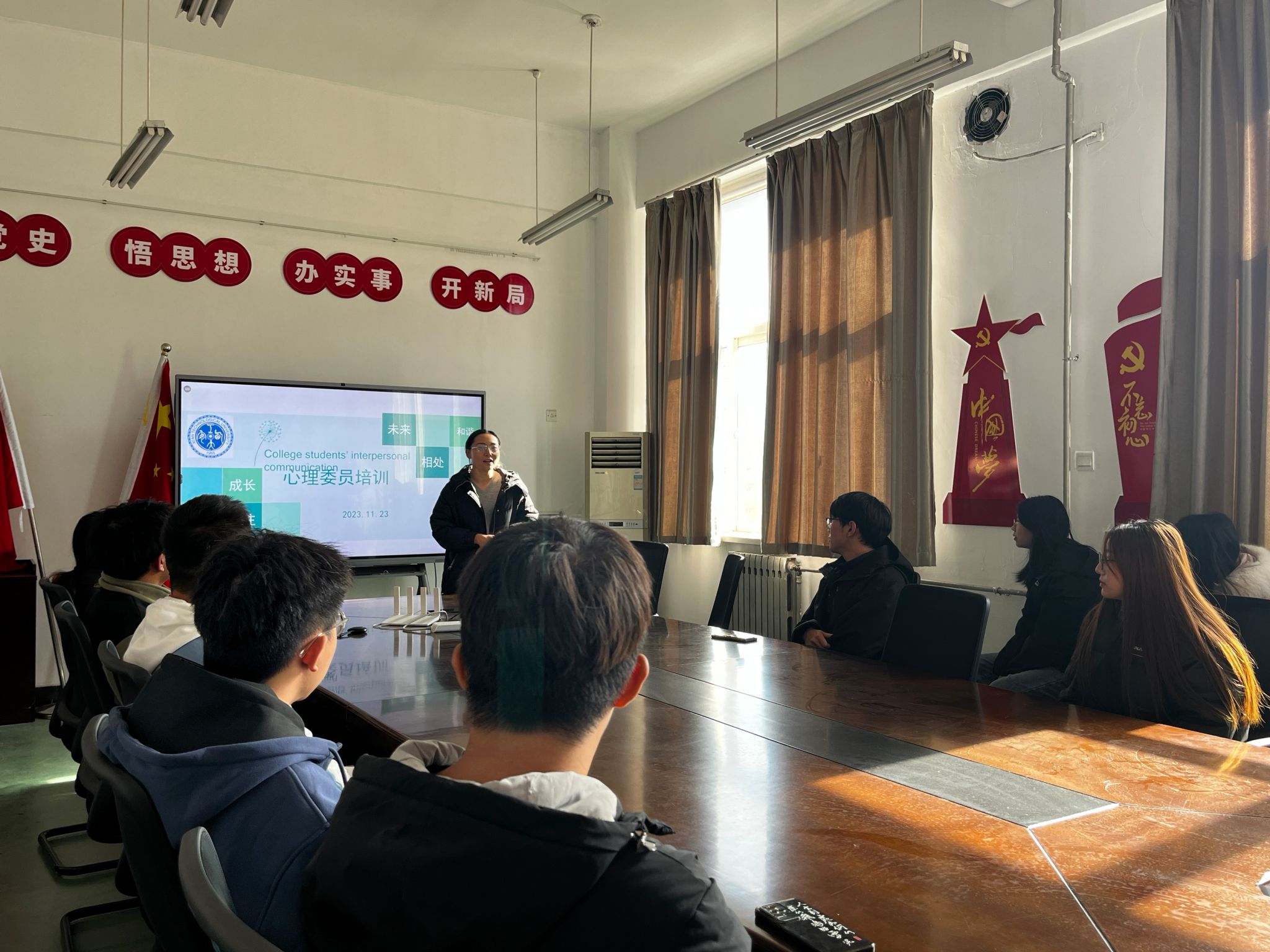 本次培训会,帮助心理委员明确了工作职责,了解了老员工常见心理问题的应对方法,加强了班级心理委员之间的交流,营造了良好的朋辈心理互助氛围,为培养出一支有心理学知识和素养的朋辈队伍打下了良好基础。
