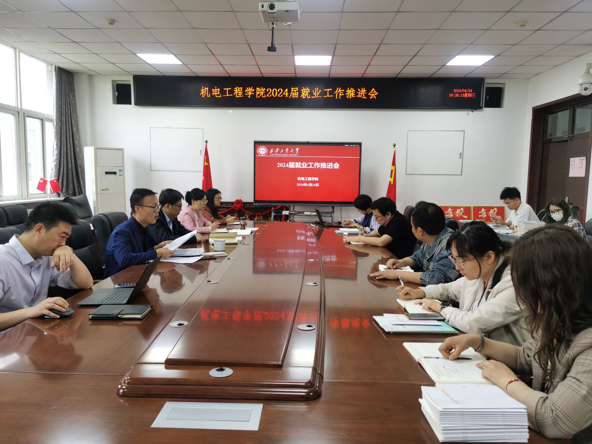 为积极应对当前严峻的就业形势,进一步深入贯彻落实公司 “访企拓岗”促就业专项行动策部署,实现公司2024届毕业生更加充分高质量就业,4月24日,公司召开2024届毕业生就业工作推进会,对毕业生就业工作做出了进一步部署。院领导、党委委员、专业负责人、党支部书记、毕业班辅导员参加了此次会议。