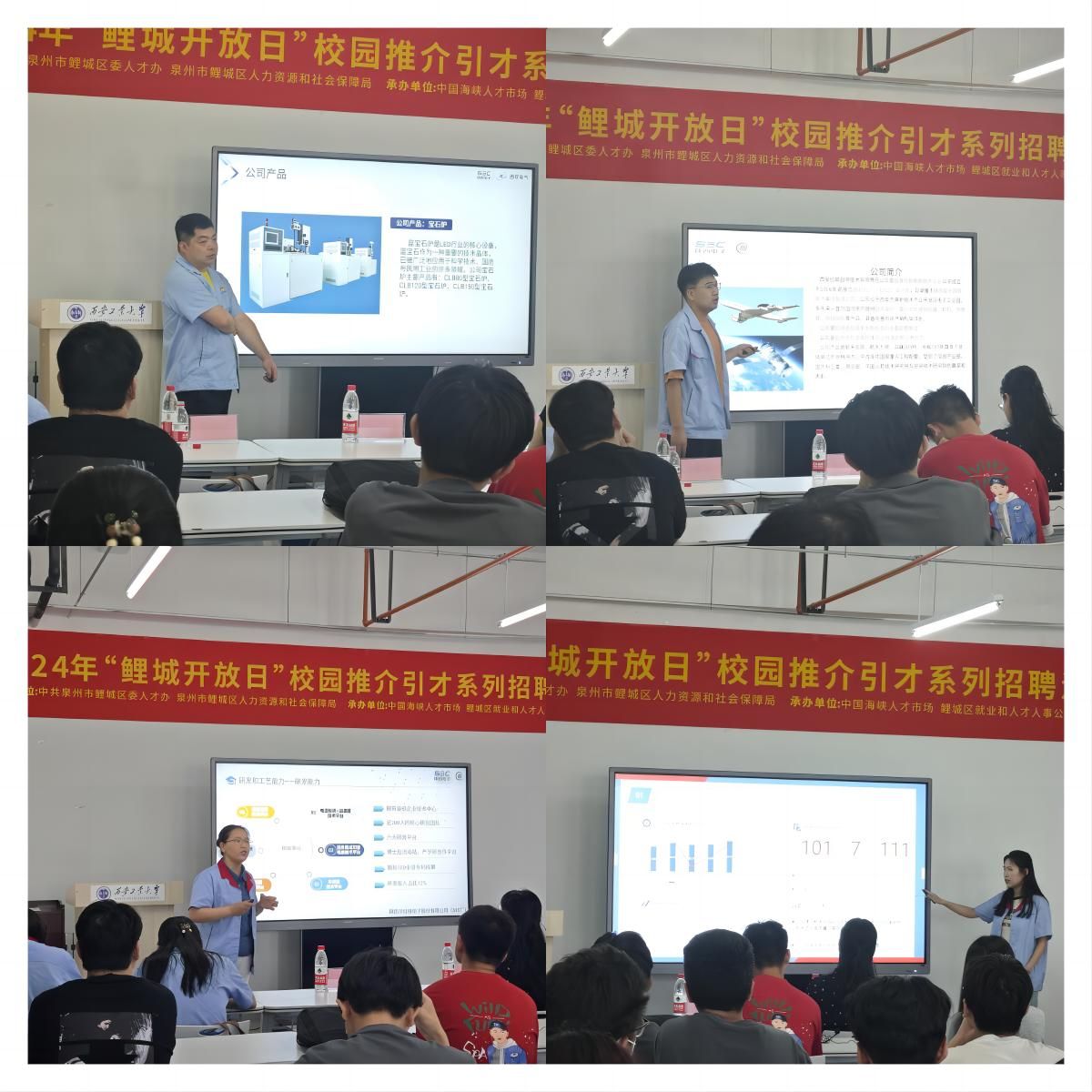 陕西华达科技股份有限公司、陕西华经微电子股份有限公司、西安创联超声技术有限责任公司、西安创联新能源设备有限公司招聘人员分别围绕公司简介、公司生产产品类型、晋升通道、岗位需求等方面进行讲解,并在现场问答环节,为同学们答疑解惑。