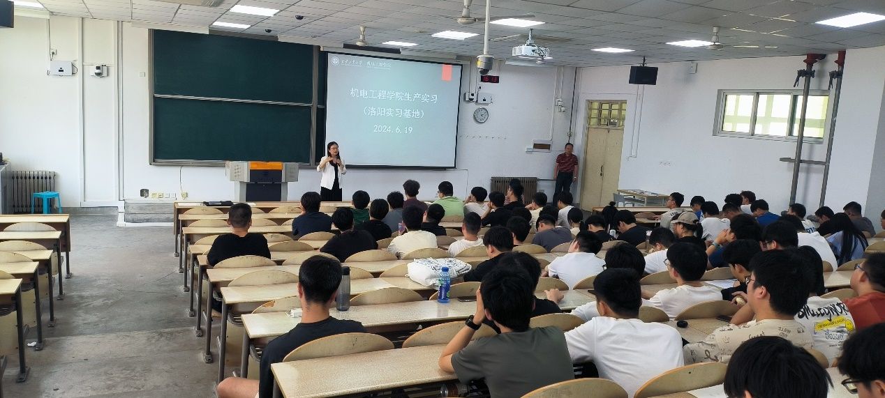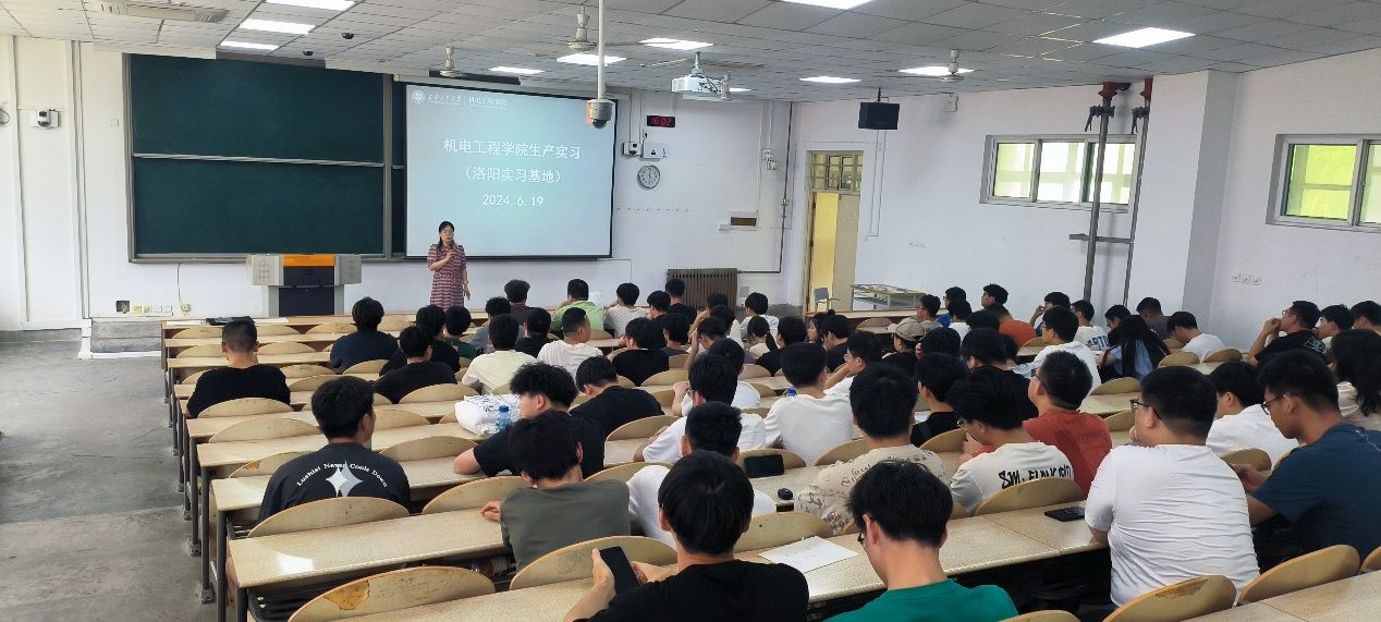 2024年6月20日下午,足球赌注网站在教1-101召开2021级生产实习动员大会。参加本次动员大会的有机电工程公司党委副书记姚敏茹,公司副经理曹蔚,洛阳实习队张晖、赵鹏、韩权利老师,以及参加洛阳实习的全体84名员工。