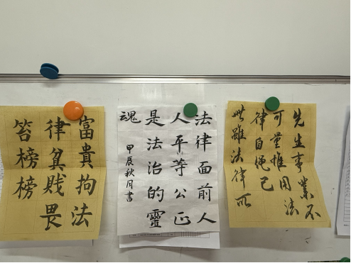 同学们的作品内容丰富、角度多样,既有对法律条文的书写,也有对法治标语的宣传,还有对法律精神的感悟和体会。这些作品不仅展示了同学们扎实的书写功底和敏锐的思维,更体现了他们对法制教育的深刻理解和积极态度。
