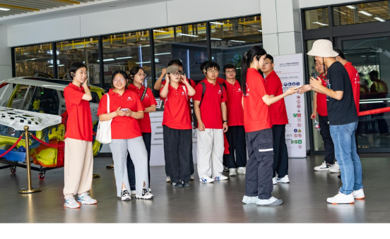 在自动化率达95%的焊接车间,500余台焊接机器人协同作业,包含有点焊、凸焊、螺柱焊、Arplas焊、激光熔焊、激光切割等等。许多同学都是第一次走进这样的现代化生产厂房,感受到强烈的智能自动化气息和震撼。讲解人员谈到:“我们采用12种先进焊接工艺,车身扭转刚度突破38000N·m/deg,精度达到±0.5毫米,超越多数豪华品牌。”
