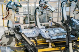 实践队首站来到冲压车间,6800吨全自动伺服压力机以每分钟18次的节奏将钢板冲压成型。技术人员介绍:“我们自主研发的冲压工艺能将误差控制在0.01毫米,相当于在头发丝上作画。”车间采用高强度钢材,通过优化排样设计使材料利用率提升至92%,每45秒即可完成一套车身覆盖件的冲压。