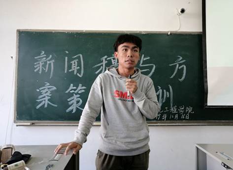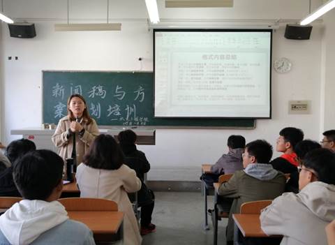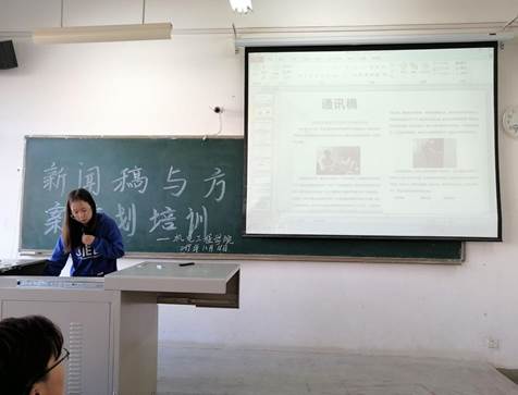 大会伊始,院团委秘书部副部长雷世舟介绍了活动策划撰写的三个方面,包括策划的意义、内容与格式。雷世舟首先强调了策划需要有一定可行性,并能使工作明确分工,确定每个人的责任。其次,他列举了有关策划内容的要点,带领大家学习策划模板。他强调,策划需明确主题,规定正文基本格式。最后向同学指出几点注意事项,并通过列举实例,让大家对活动策划有了更加深刻的理解。接下来院团委秘书部部长郑佩向同学们展示了一篇通讯稿模版文章,讲解通讯稿的大体结构,辅助同学们形成较为清晰明确的通讯稿撰写模式。接着她分别强调了标题、开头、正文等通讯稿基本格式的要求及说明,并配以例文帮助大家有了更为直观的印象。最后以文字形式介绍通讯稿内容的结构,强调了结尾圆润地收尾。