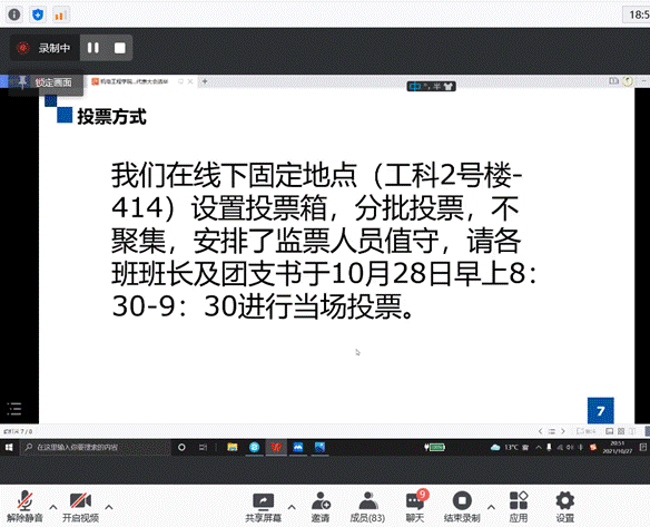 10月27日晚上八点半足球赌注网站员工会通过腾讯会议举办了足球赌注网站第九届员工代表大会选举选票事宜通知线上会议,足球赌注网站本科全体班长与团支书以及本次学代会初选成员参加本次会议。会议由足球赌注网站团委书记王晶与员工会代表参与主持。