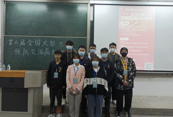 在答题开始前,各部门工作人员引导同学们就坐并扫描黑板上的答题二维码,进行答题。答题期间,工作人员维持考场秩序,同学们也积极配合工作人员的管理,独立完成此次竞赛。参赛的同学们大都获得优异的成绩,荣获由全国老员工预防艾滋病答题平台颁发的电子版《第六届全国老员工预防艾滋病知识竞赛优秀荣誉证书》。活动结束后,工作人员合影留念。